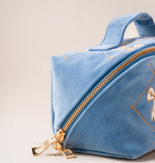 Lattice Bows Velvet Open Flat Makeup Bag - Dusky Blue
