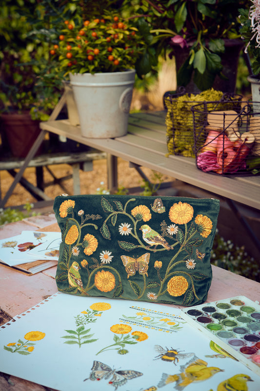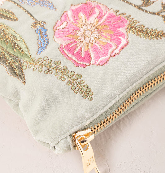 Pressed Flowers Mum Velvet Everyday Pouch Sage