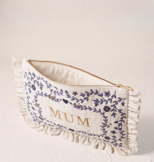 Mediterranean Garden Mum Velvet Frill Pouch Cream