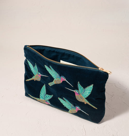Hummingbird Ink Blue Velvet Everyday Pouch