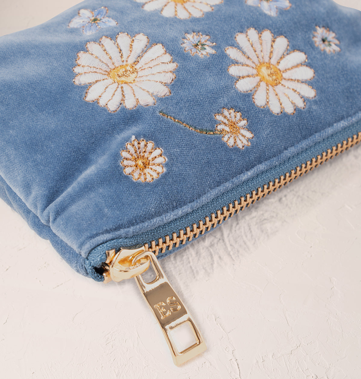 Daisy Dream Dusky Blue Velvet Everyday Pouch