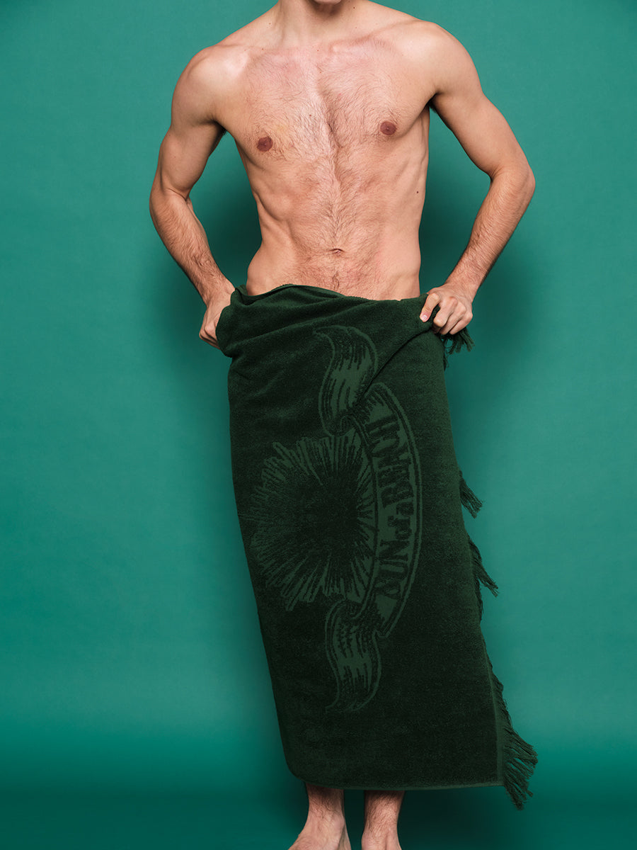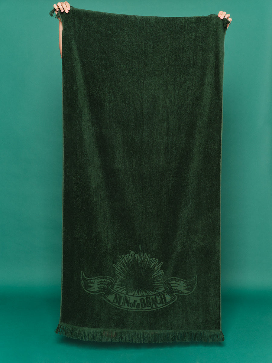 Introducing 'Evergreen', the latest addition to the Monochrome collection. This shade green is the epitome of sophistication and style, earning its place as the season's most fashionable color. Perfectly unisex, its chic and profound hue brings an air of elegance and depth to your beach ensemble, making it a must-have for those who appreciate understated luxury and timeless appeal. Made from top-quality cotton, our Monochrome beach towels are delightfully fluffy, soft, and highly absorbent. Generously sized to keep your feet away from the sticky sand, these towels also feature stylish fringed edges and our distinct logo embossed at the bottom, making them your perfect beachside companion.