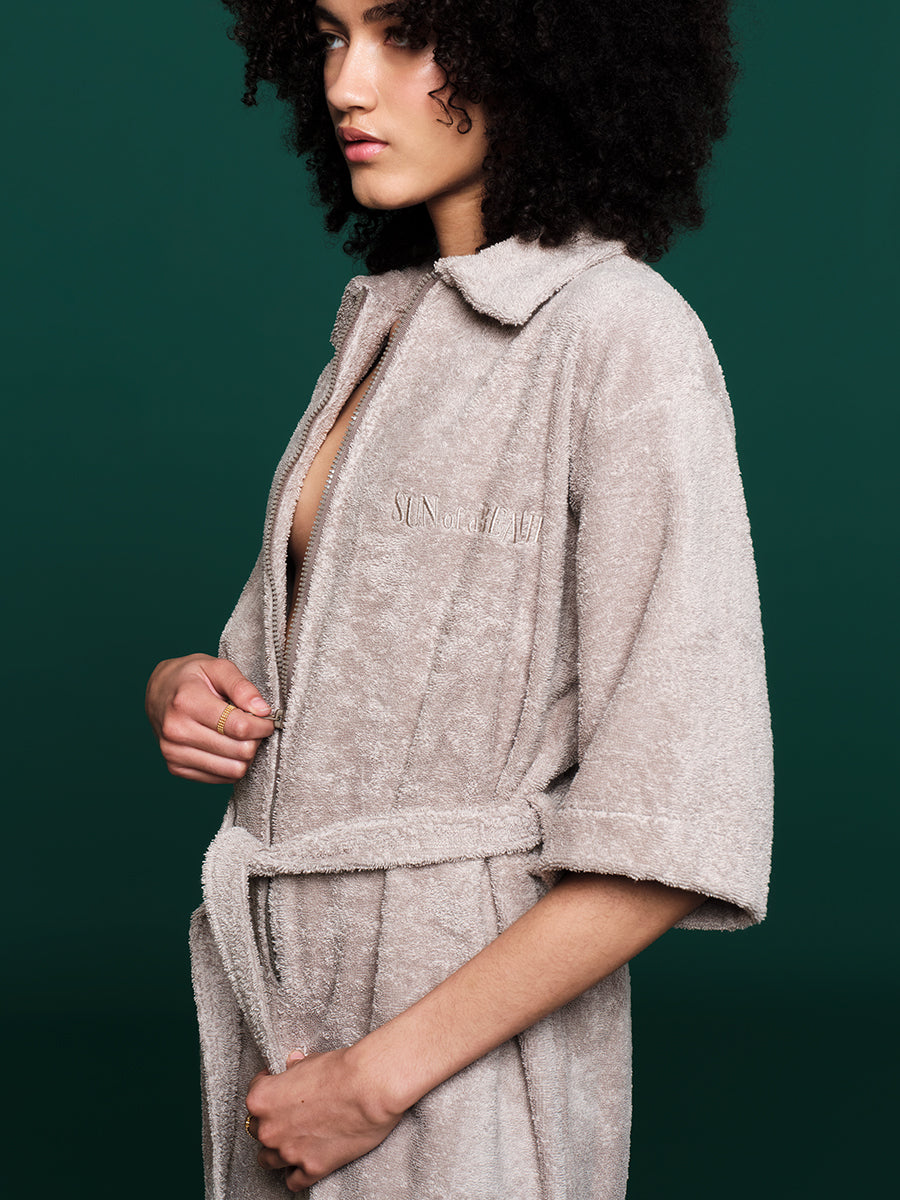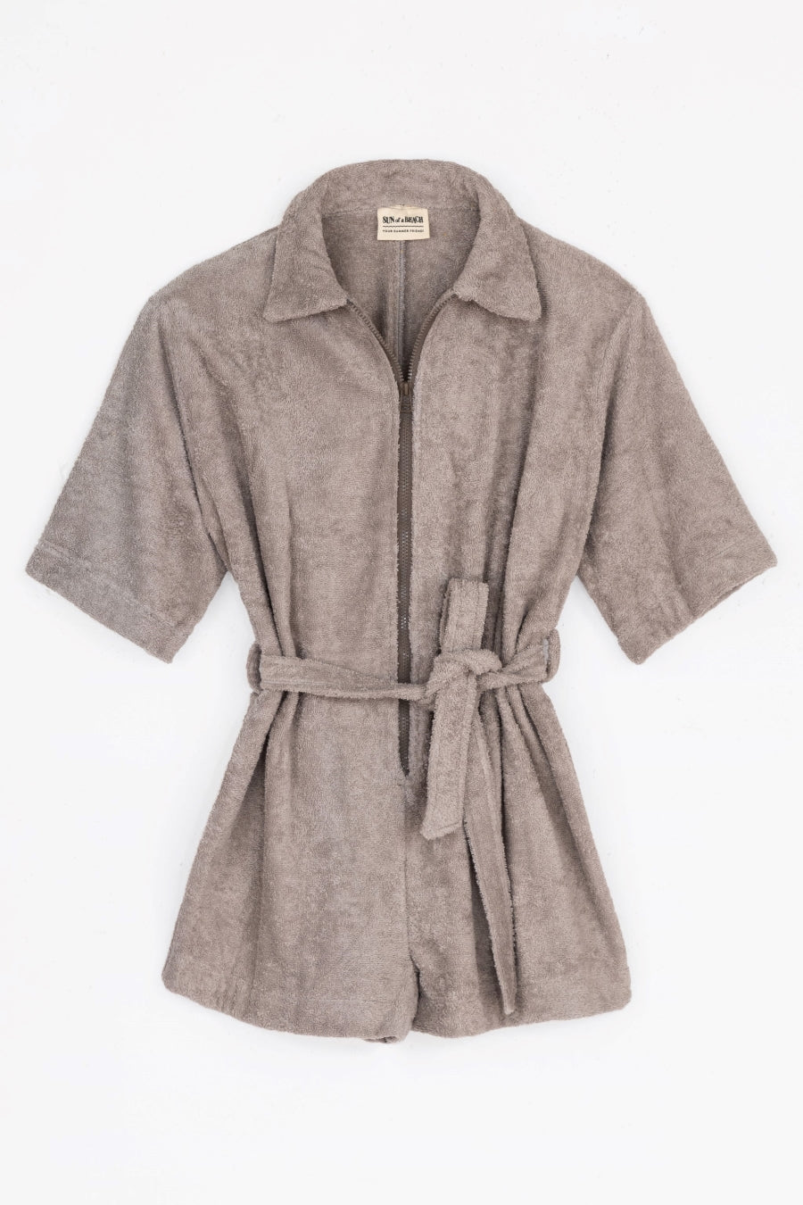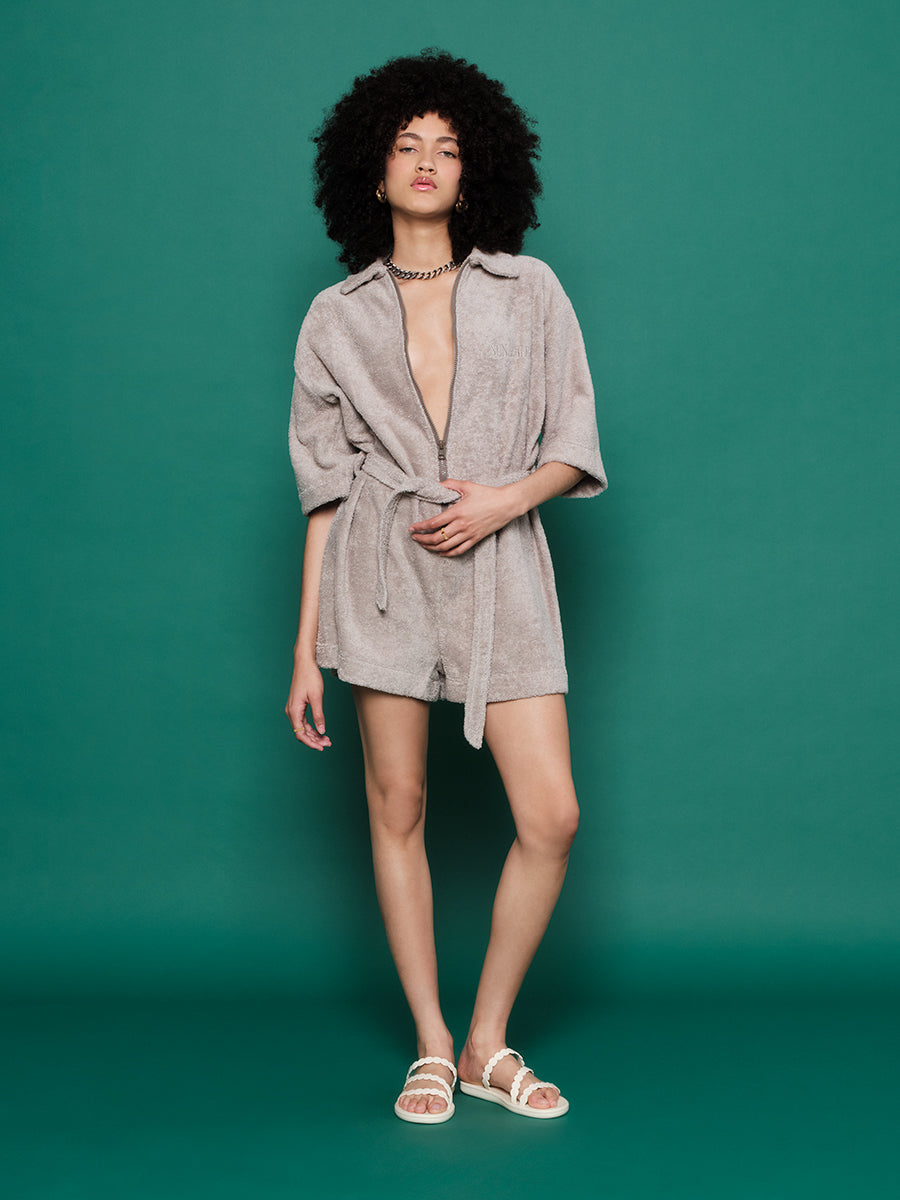 When a dress is overkill but shorts are just not the vibe, there is the Terry Romper. From the chaise longue to the beach front restaurant, and everywhere in between, our cozy, 100% cotton terry romper in blocky bright colors is just the thing to pack.