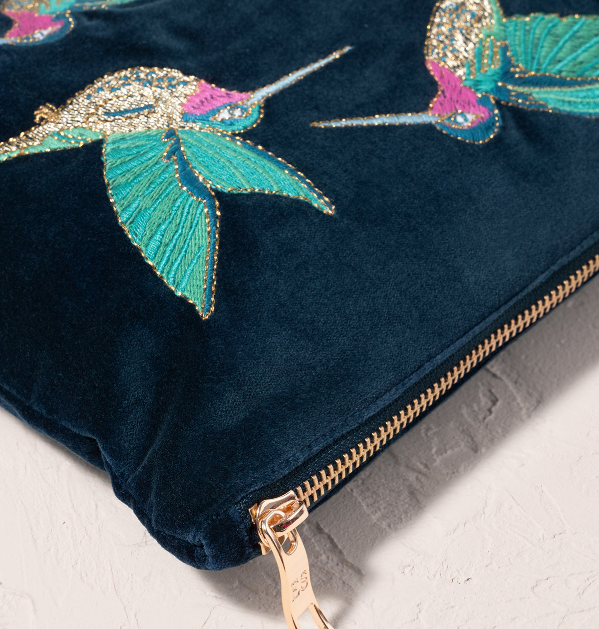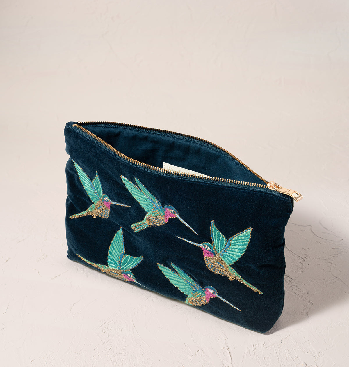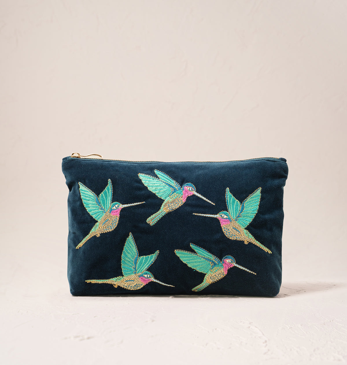 Hummingbird Ink Blue Velvet Everyday Pouch