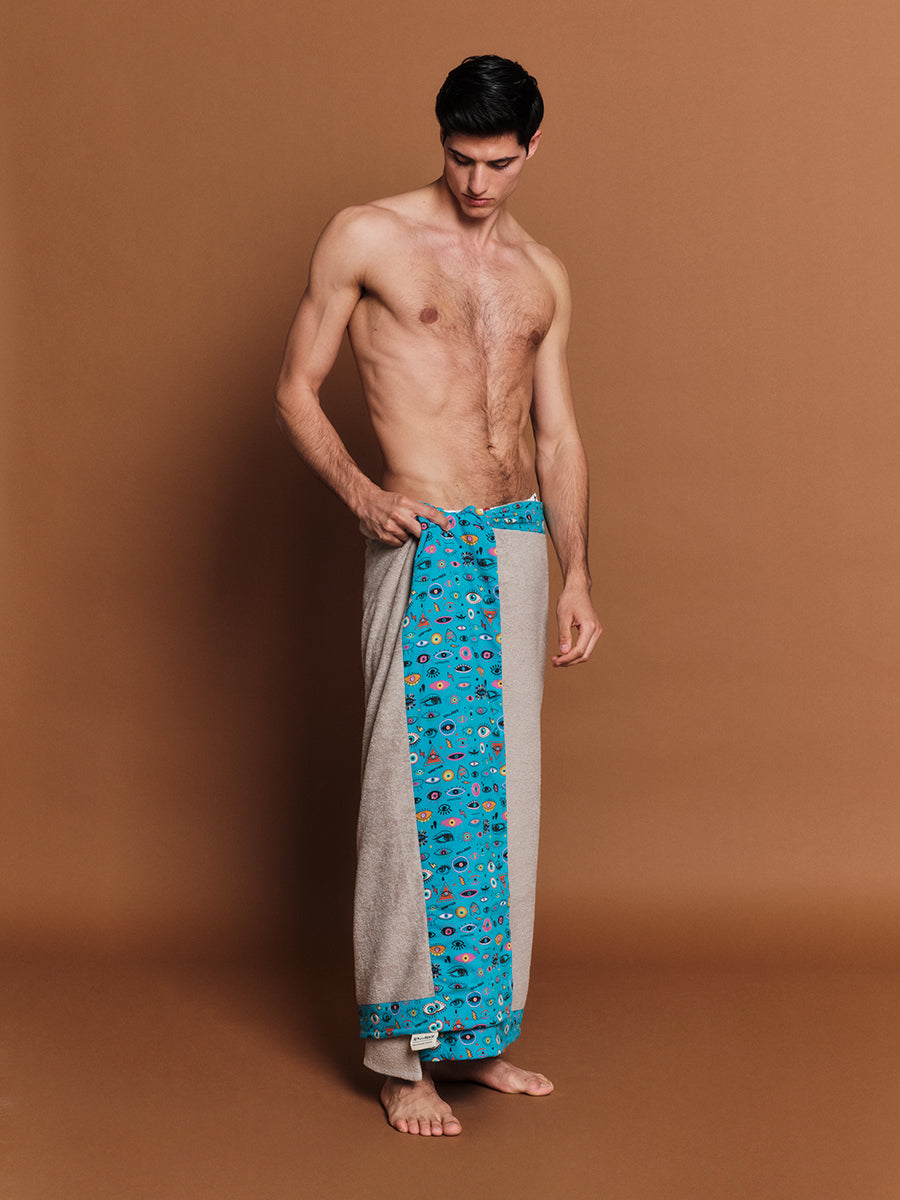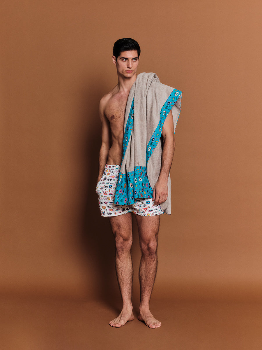 It's in the eyes, chico. The Sky Blue Eyes, that is! Dive into a world of whimsy with our fun-loving pattern, that brings a touch of mystical charm to your sun-kissed adventures! Our super long Head 2 Toe beach towels are inspired by endless beach days and moonlit summer nights. Made from exceptional quality Egyptian cotton and framed with a contrasting print in the softest cotton poplin, they’ll cover you from head to toe, which means no more burnt feet while sunbathing!