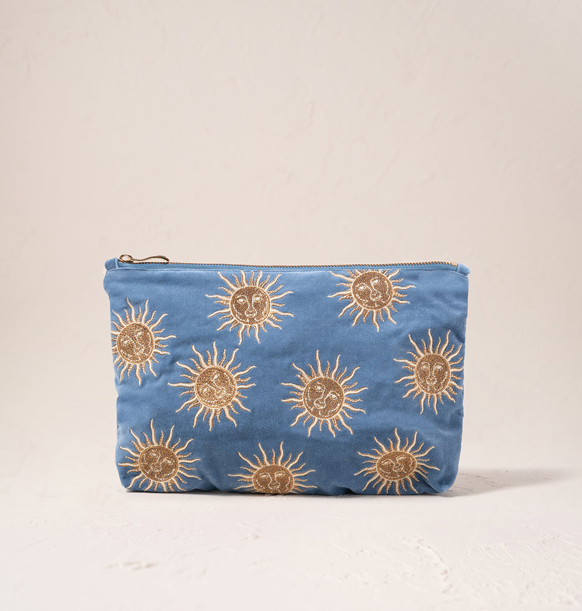 Sun Goddess Dusky Blue Velvet Everyday Pouch