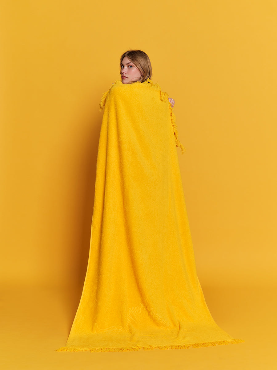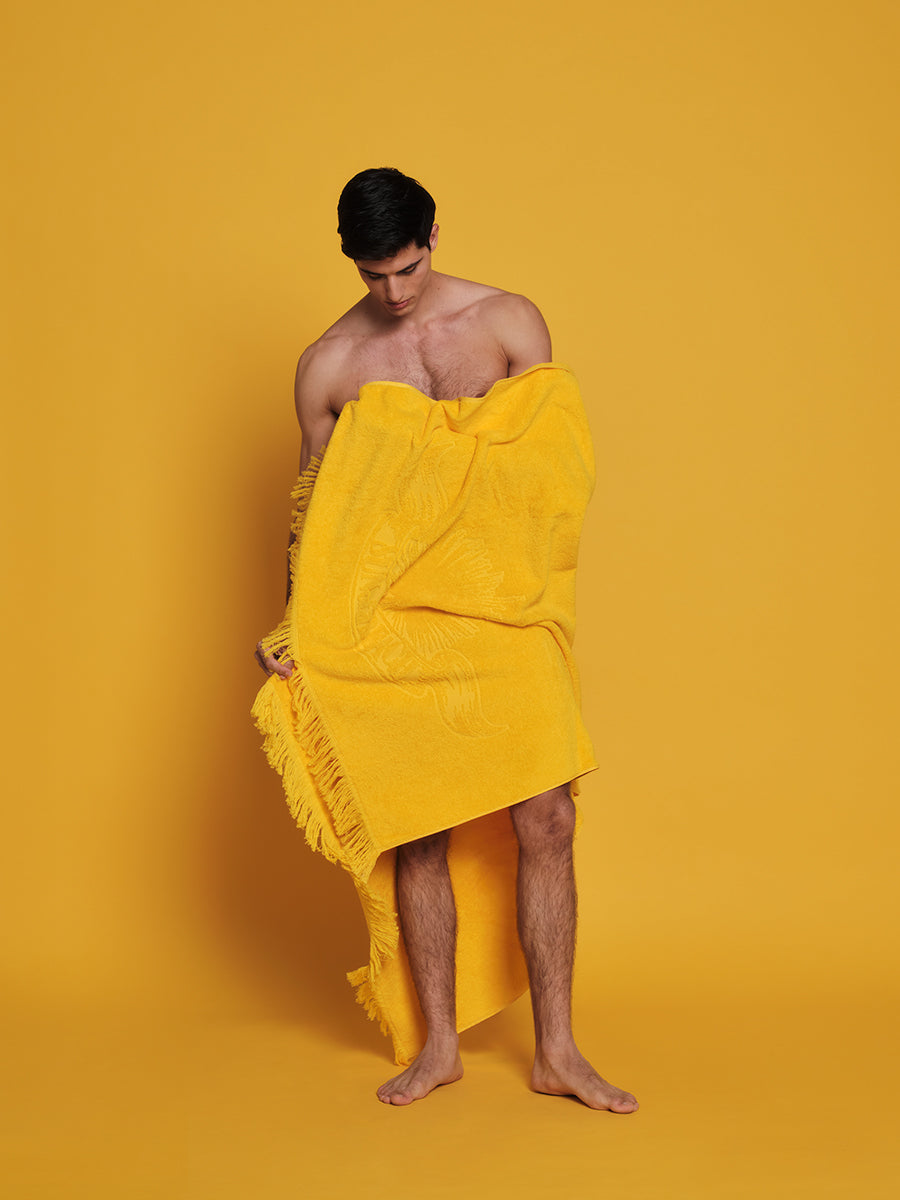 Radiant and lively, the Super Yellow towel, mirroring the sun's own cheerful hue, is perfect for infusing your holiday style with a sunny pop of color. And it looks fantastic with our printed swimsuits. The Monochrome beach towels are chic and simple with a timeless, unisex appeal. Made from the finest cotton, these towels are extremely fluffy and soft, as well as very absorbent. They are also long enough for you to lay on without having your feet touch the sticky sand. Design details include fringed edges and our logo embossed at the bottom.