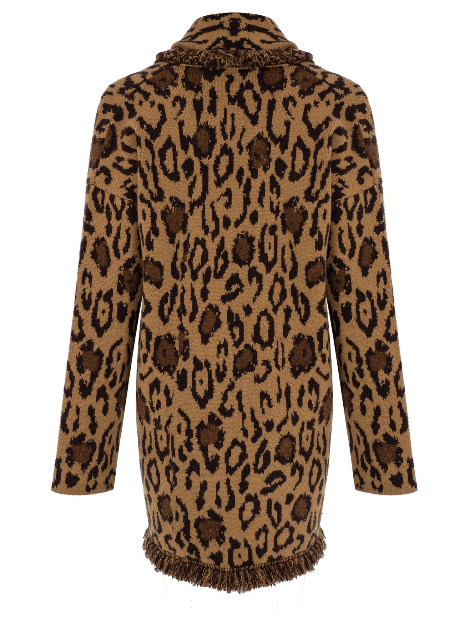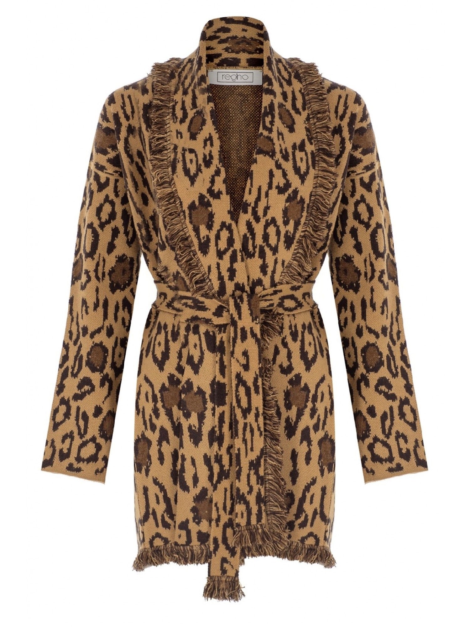 Fringed & belted jacquard cardigan