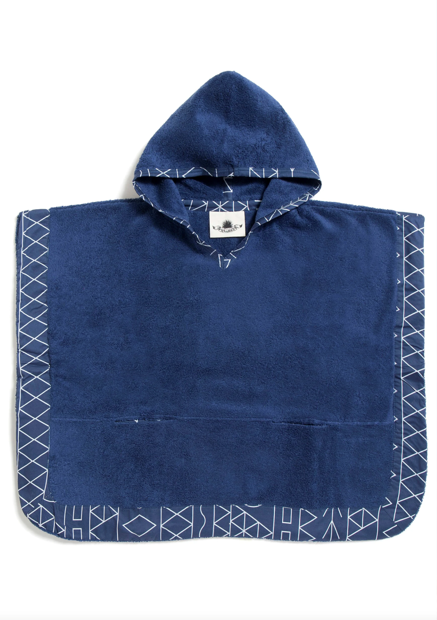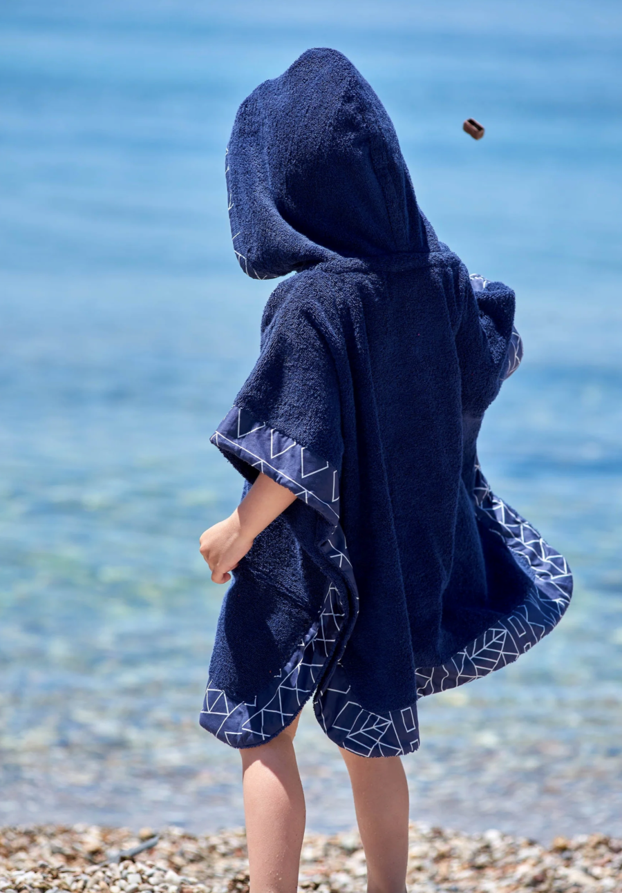 Match your little one with mom or dad's Tinos towel or bag for a sophisticated mini-me look. Our Kids Poncho is calling all junior beach explorers! We know how much kids can’t stand itchy materials and uncomfortable wet towels, that’s why we made these super fluffy and absorbent ponchos from 100% Egyptian cotton, with a 100% cotton poplin trim. We have also added a hoodie, which will keep your little ones warm in terms of temperature and cool in terms of style!