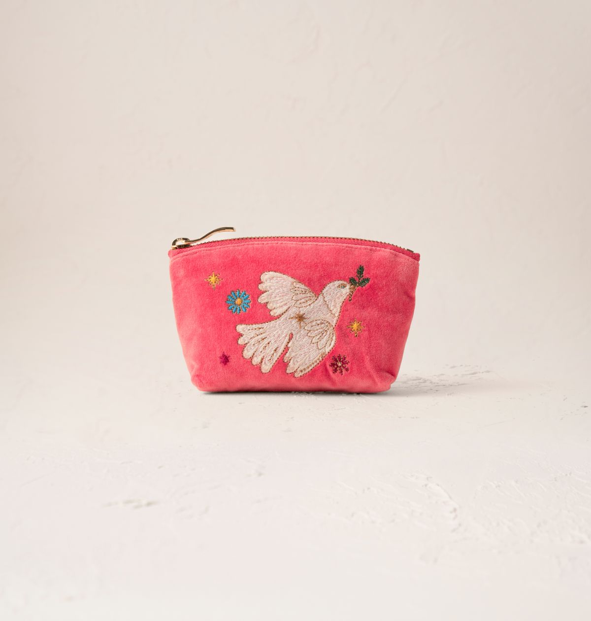 Doves of Peace Velvet Coin Purse Spiced Coral