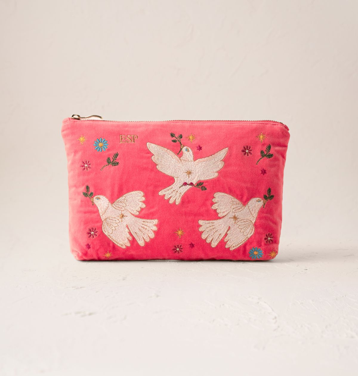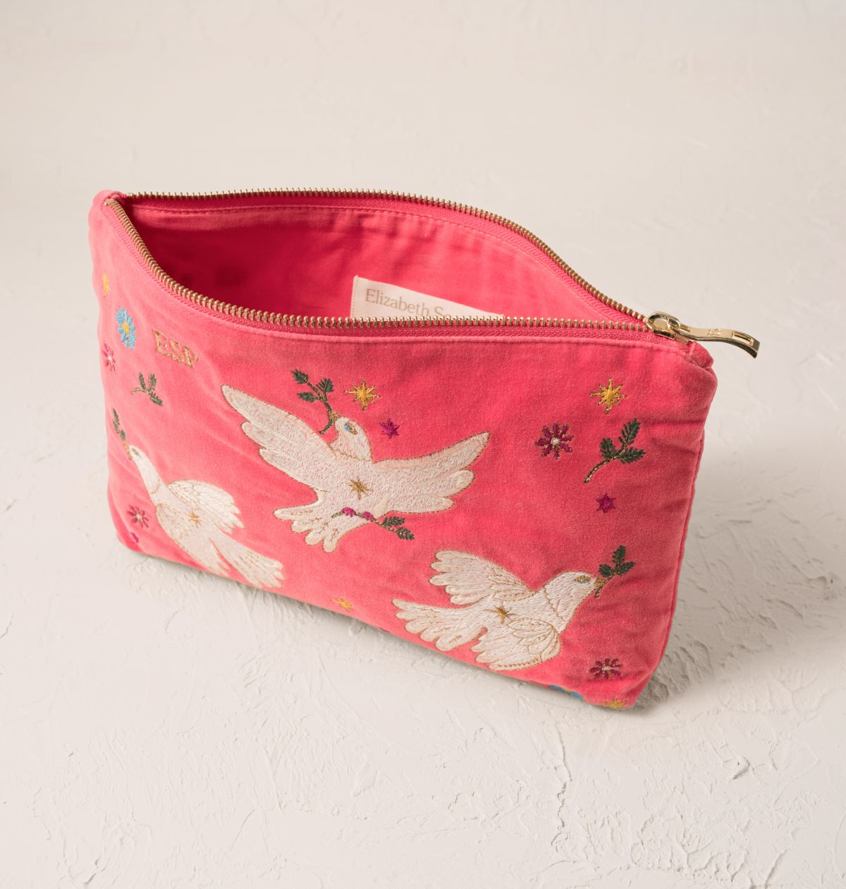 Doves of Peace Velvet Everyday Pouch Spiced Coral