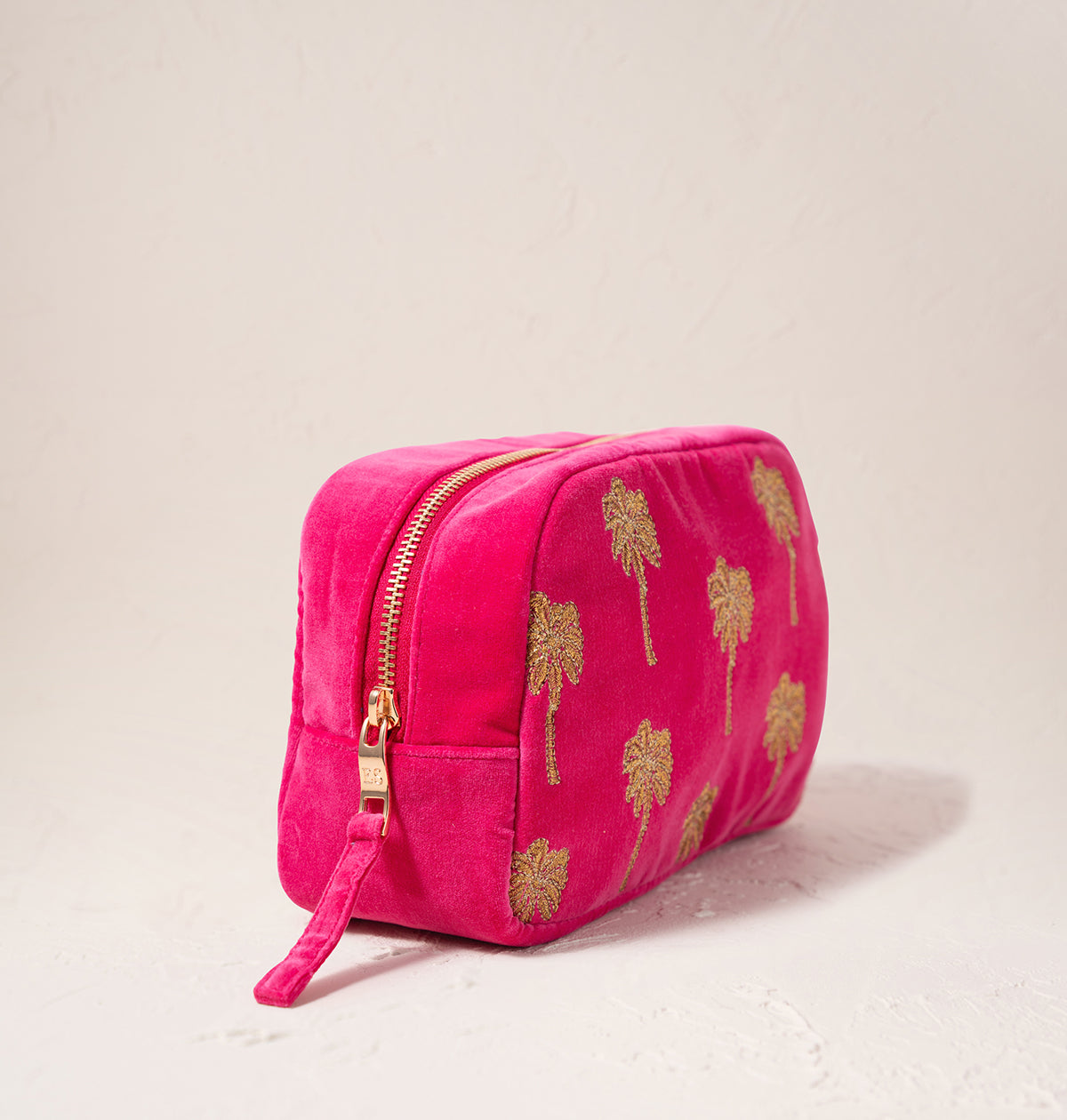 Gold Palm Pink Velvet Makeup Bag