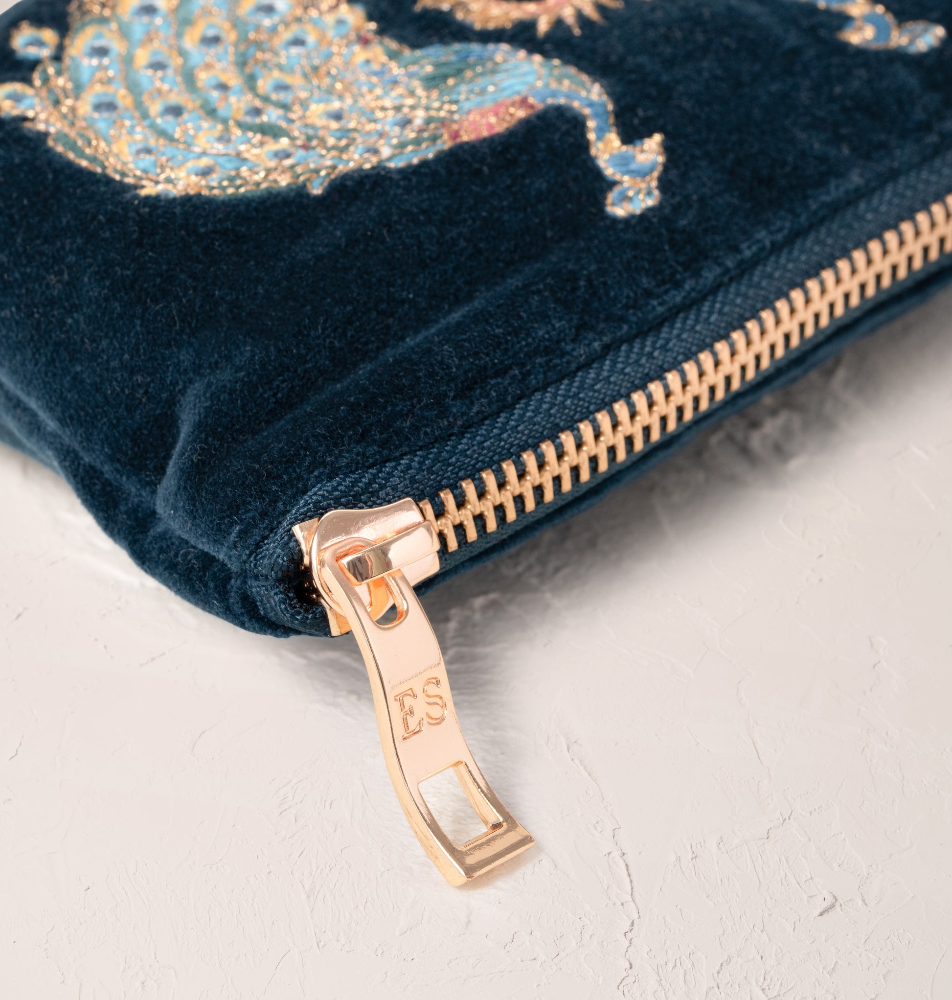 - Gold zip closure