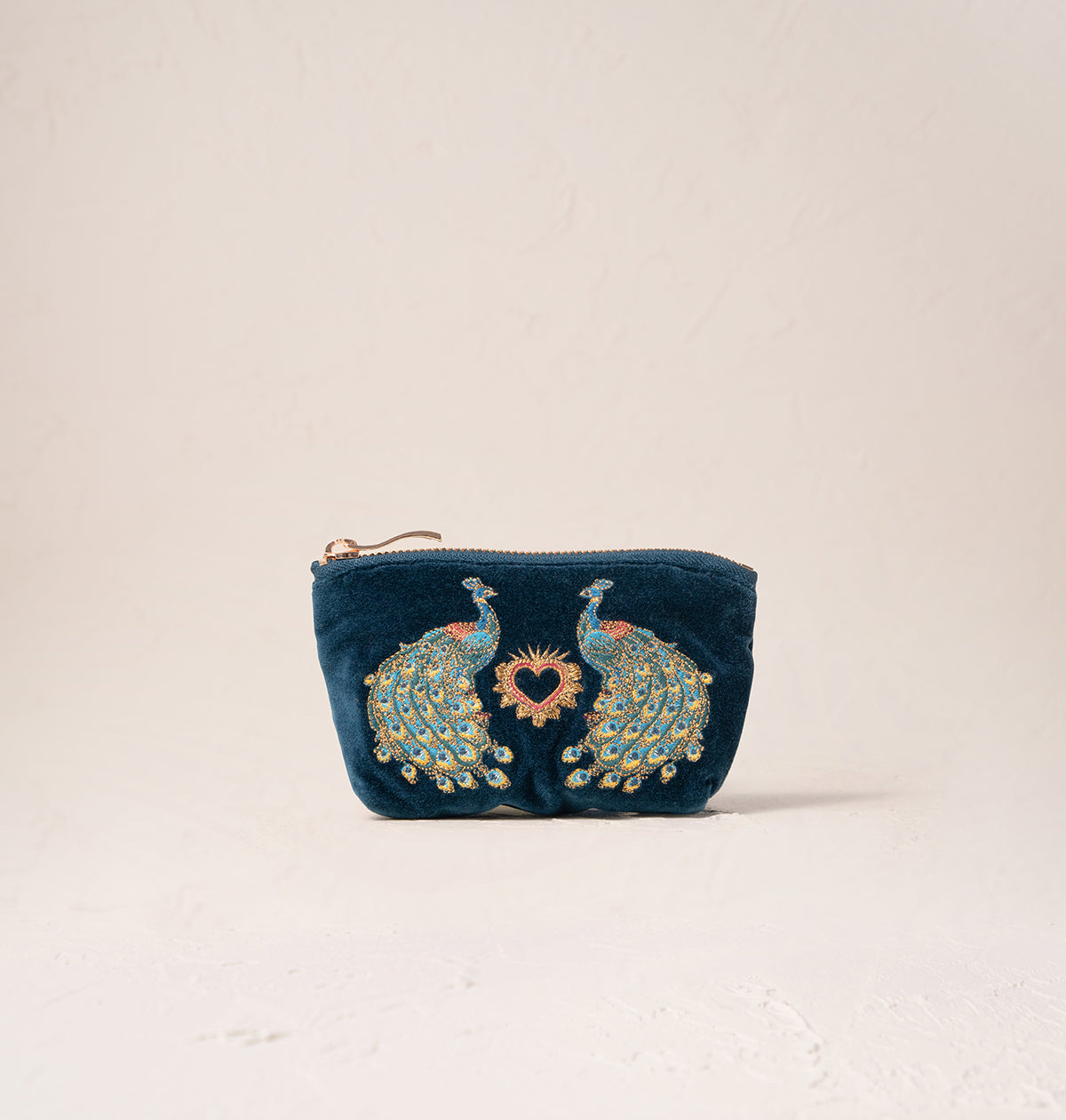 Peacock Floral Ink Blue Velvet Coin Purse